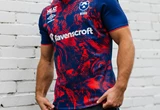 Bristol Bears new home kit features an iconic navy and red colour scheme with a stand out graphic print bear head design which adorned the front.